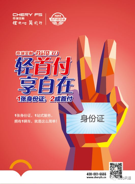 奇瑞金融原有畫(huà)面中,以舉起食指,表示一張身份證輕松辦理貸款手續(xù)。而在升級(jí)版簡(jiǎn)易貸3.0中,畫(huà)面也同步升級(jí):不僅手握一張身份證,而且以兩個(gè)手指表示2成首付,且構(gòu)成“勝利”手勢(shì),將主題“輕首付,享自在”的輕松感和愿望成真的勝利感更鮮明地凸顯出來(lái)。