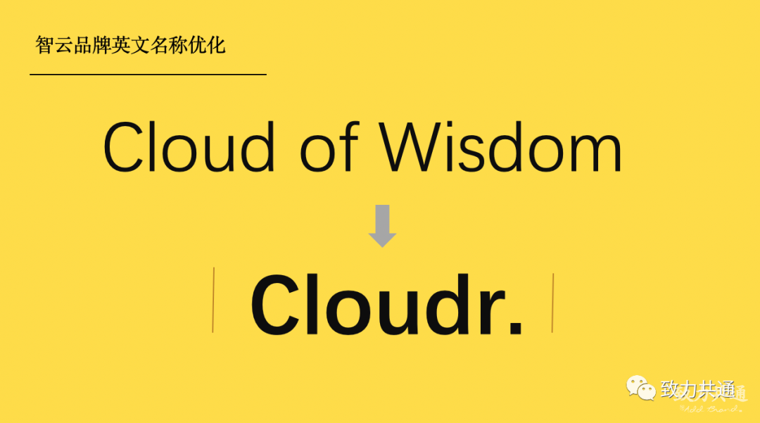 智云品牌英文名(Cloud of Wisdom)與中文名關(guān)聯(lián)性弱且冗長(zhǎng),不利于市場(chǎng)記憶及傳播。