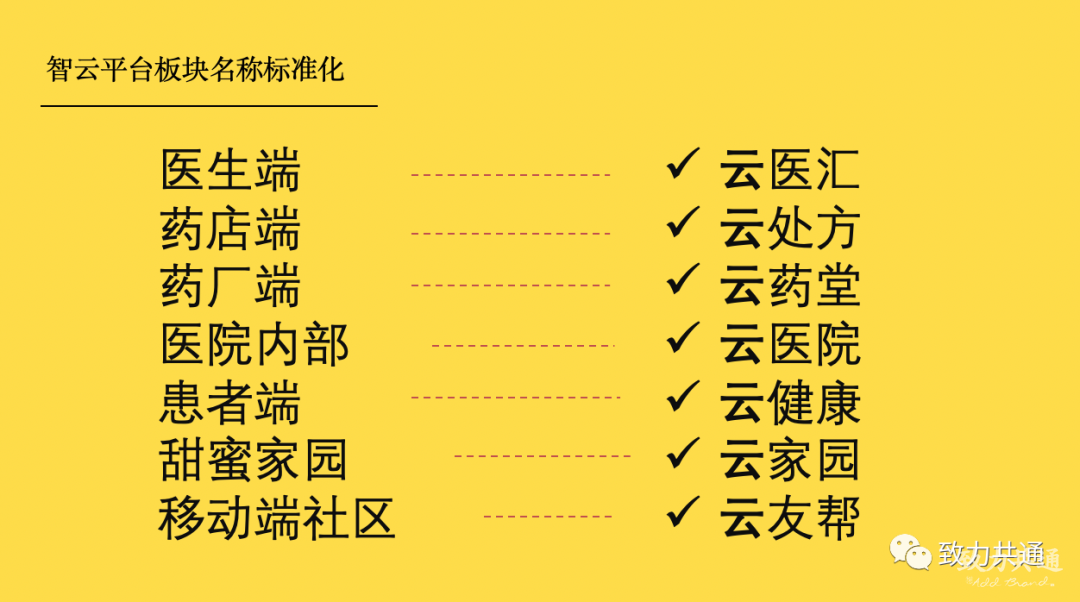 以品牌名稱中的“云”來貫徹,對(duì)智云平臺(tái)旗下的七大業(yè)務(wù)版塊,進(jìn)行規(guī)范化重新命名,使各業(yè)務(wù)模塊概念統(tǒng)一化、體系化。