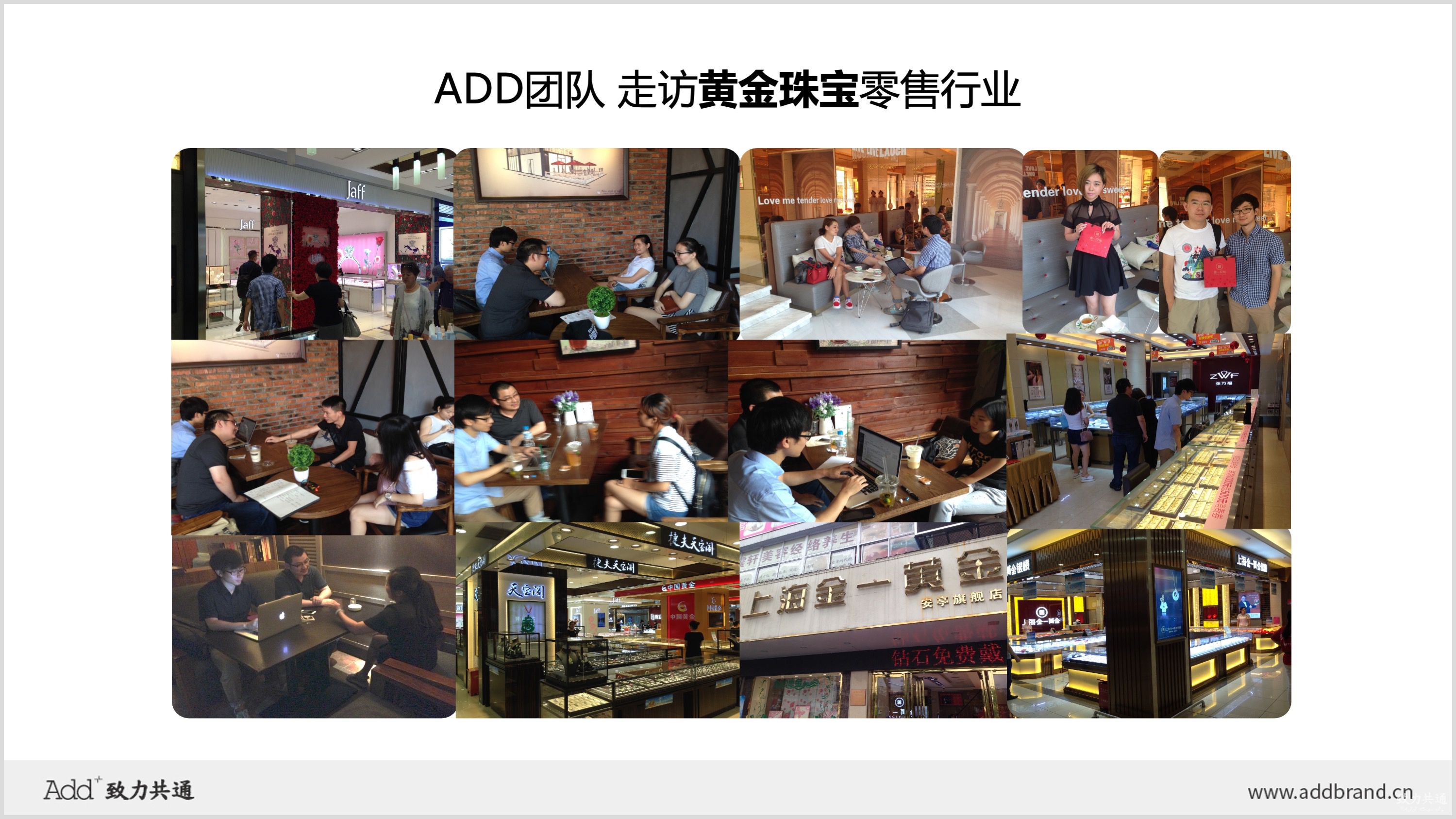 短短十二天的時(shí)間里,ADD策劃團(tuán)隊(duì)兵分幾路,跑遍上海、杭州、南京、哈爾濱以及廣東等地,考察了寶慶、越王、張萬(wàn)福、JAFF等黃金珠寶門店,對(duì)當(dāng)?shù)厥袌?chǎng)及消費(fèi)者進(jìn)行調(diào)研走訪。