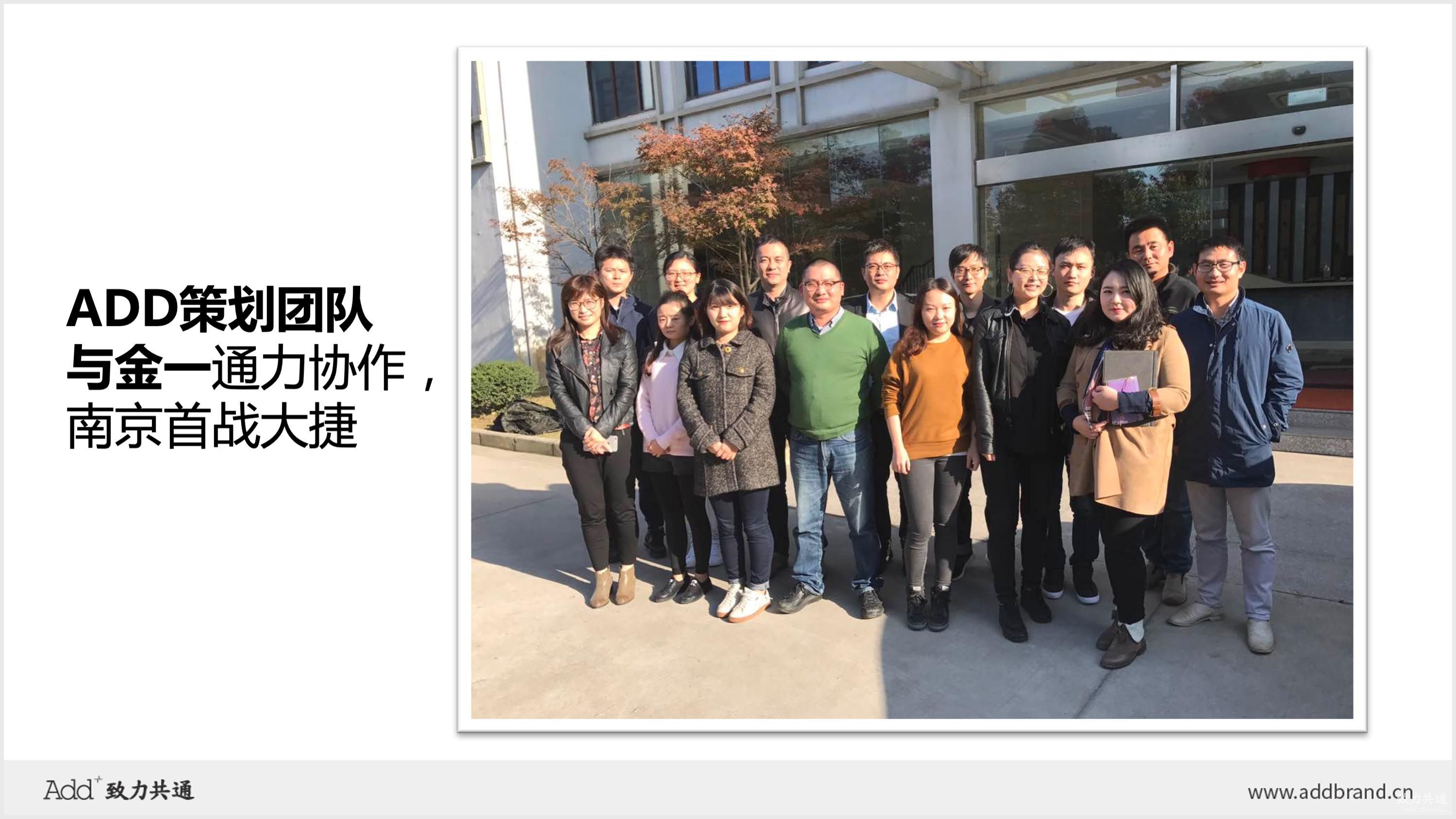 品牌落地的首站,是素有“六朝古都”之稱、長三角地區(qū)商貿(mào)與金融重點(diǎn)城市、江蘇省省會——南京。打響南京市場第一炮,對其他區(qū)域市場有極大的樣板價值。ADD決定派精英團(tuán)隊入駐南京三個月,與當(dāng)?shù)亟鹨粻I銷人員并肩作戰(zhàn)。