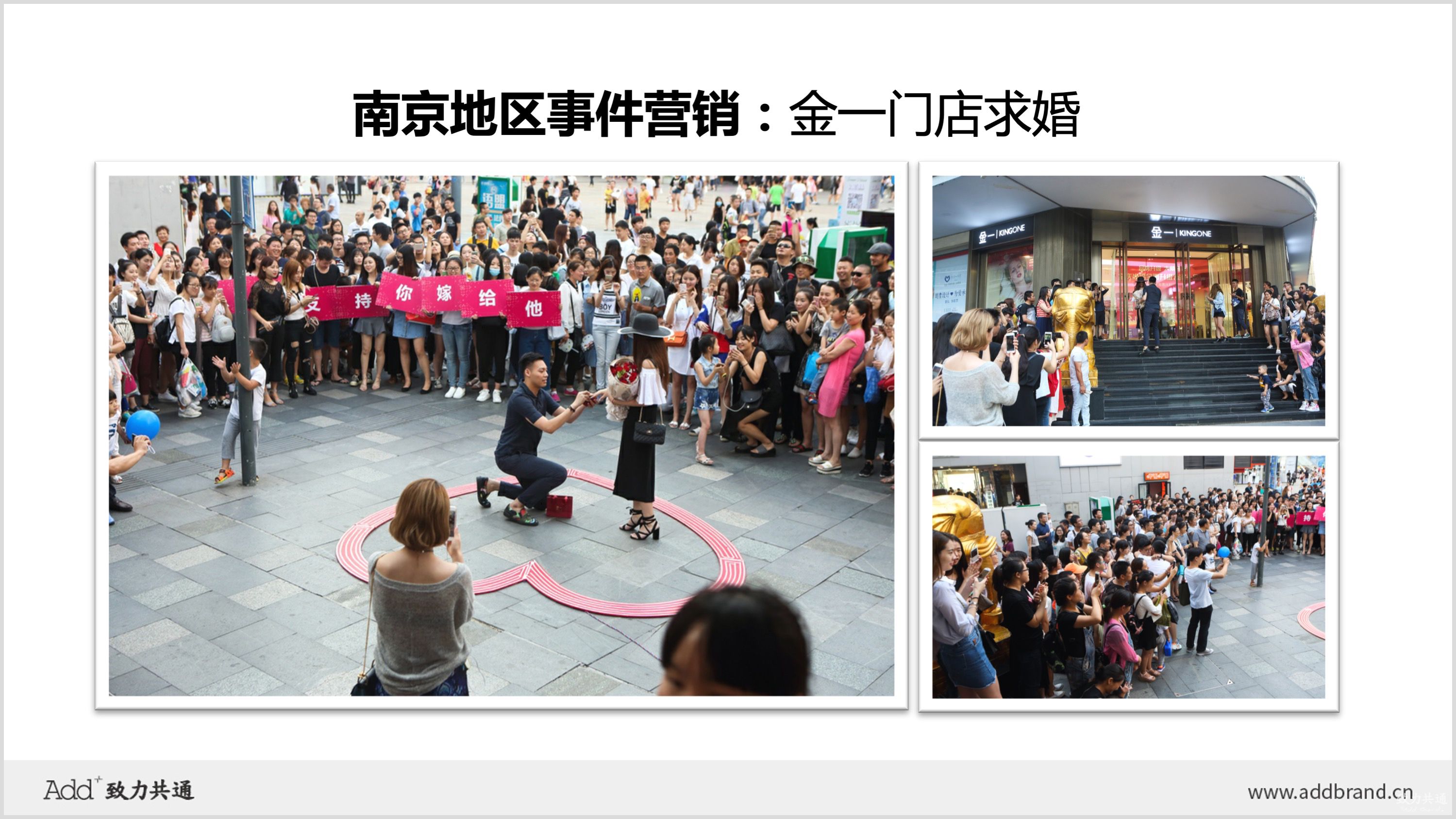 營銷的預(yù)熱期,正值七夕情人節(jié),金一以強(qiáng)大的媒體攻勢,在江蘇和南京的主流媒體,宣傳品牌入駐的消息。另一方面,一場驚心動魄的“社會事件”正在醞釀中。