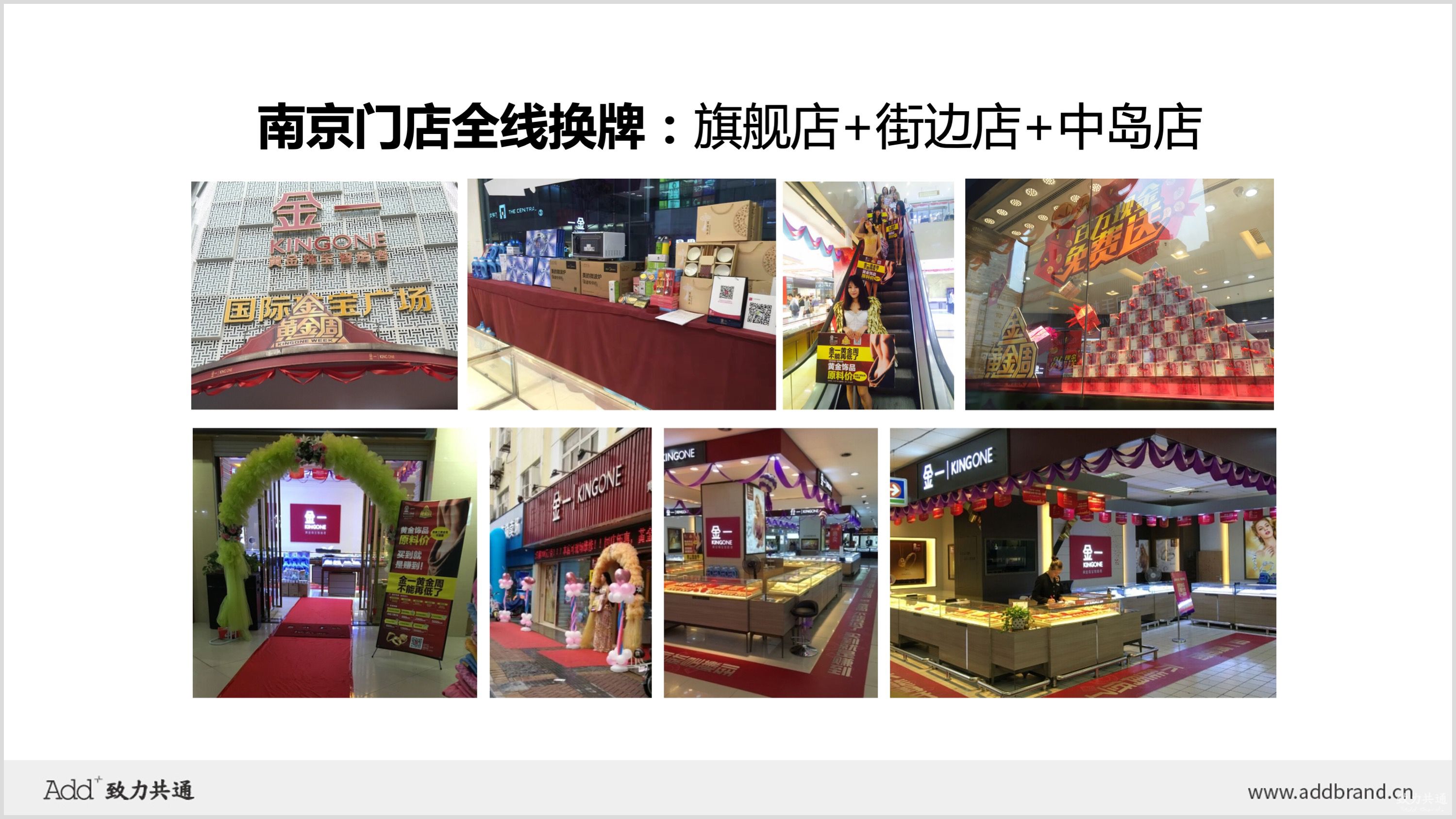 1、更換寶慶尚品門店招牌為“金一”,實現(xiàn)品牌識別及資源的全面轉(zhuǎn)移,從而快速占位南京乃至江蘇市場。