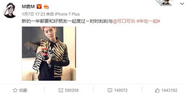 今年年初,可口可樂成功簽約人氣小鮮肉:鹿晗為其品牌代言人。鹿晗作為當(dāng)前超高人氣男藝人,形象陽光正向,粉絲效應(yīng)顯著。與可口可樂簽約后,其所發(fā)布的品牌推廣微博點(diǎn)贊數(shù)高達(dá)144W之多。